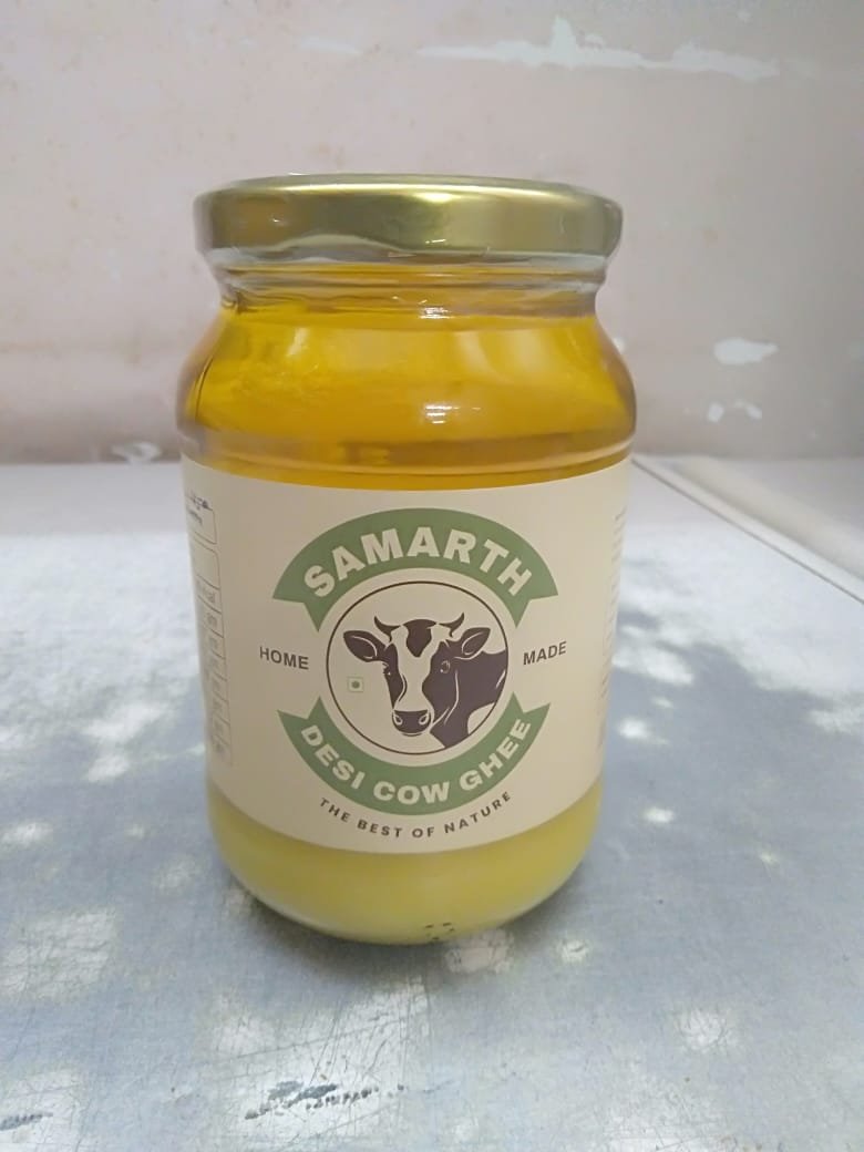 • Homemade Pure Desi Cow Ghee packed in glass bottles for freshness